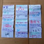 Tamsin: We were in Cornwall for half-term where the weather varied from balmy autumn days to freezing winter hail. Luckily, with the help of wetsuits and a new-found game we did not mind what the weather threw at us. Our friends taught us ‘Paper Telephones’ and we were soon hooked. All you need are paper, pens and the ability to fold. Each person is given a piece of paper and the game proceeds very much like ‘Heads, Bodies and Legs’ except that you start off writing a silly sentence at the top of the page.